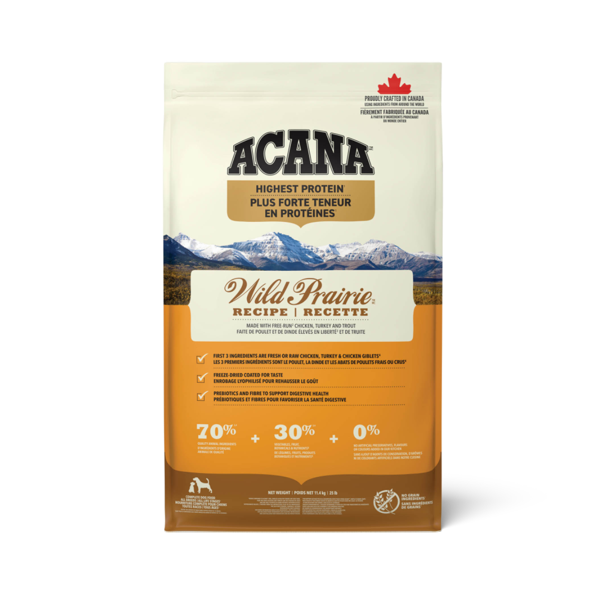 1 Approximate and derived from the unprocessed state of the ingredients. 2Our free-run chickens and turkeys are not housed in cages and are able to move in a barn without outdoor access. 3We also add vitamins, minerals, natural preservatives and probiotics. 4Produced in a facility that also processes grains. Our included fresh ingredients use refrigeration as the sole method of preservation and our included raw ingredients are frozen at their peak freshness.