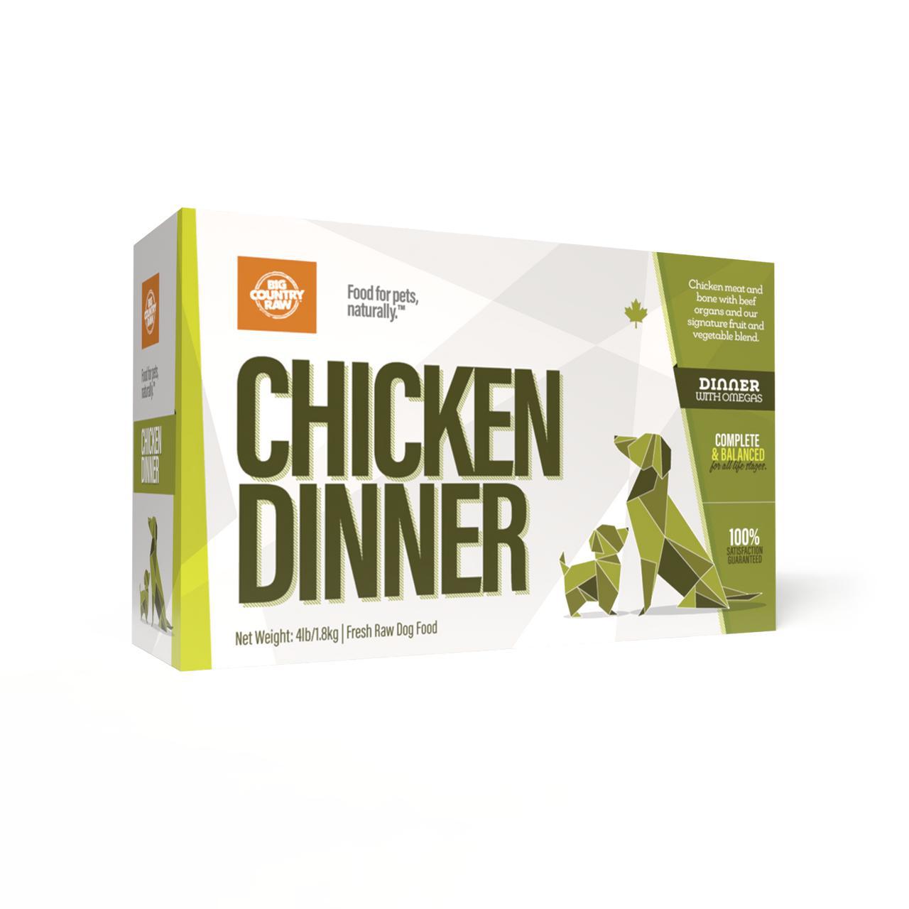 Big Country Raw Chicken Dinner is formulated to meet the nutritional levels established by the AAFCO Dog Food Nutrient Profiles for all life stages except growing large breed (70lb or more). Suitable for large breed puppies (70 lbs or more as an adult), if included as 1/3 of the diet, fed alongside 2 other protein options.
