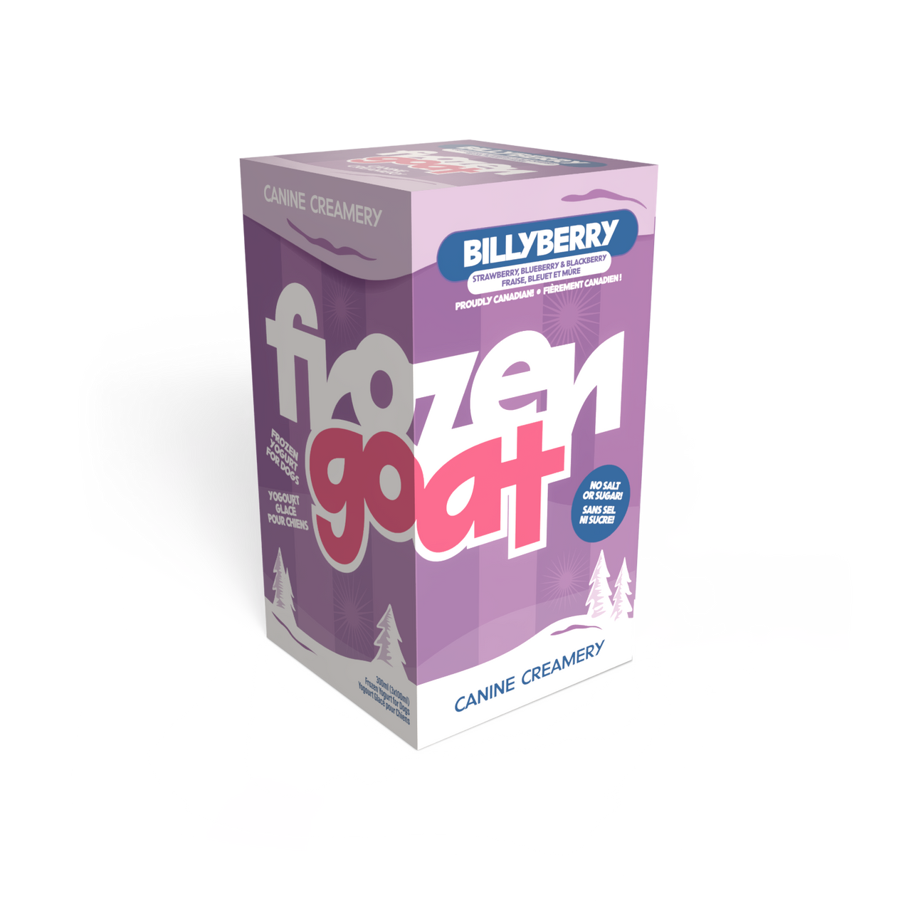 A berry delicious frozen treat with strawberry, blueberry, and blackberry, your pet is sure to love! Frozen Goat is made with goat milk yogurt, fruit purée and agar for a 100% natural, thick and creamy treat. Our frozen yogurt is cold fermented and naturally full of probiotics that are great for your furry friend’s gut health.