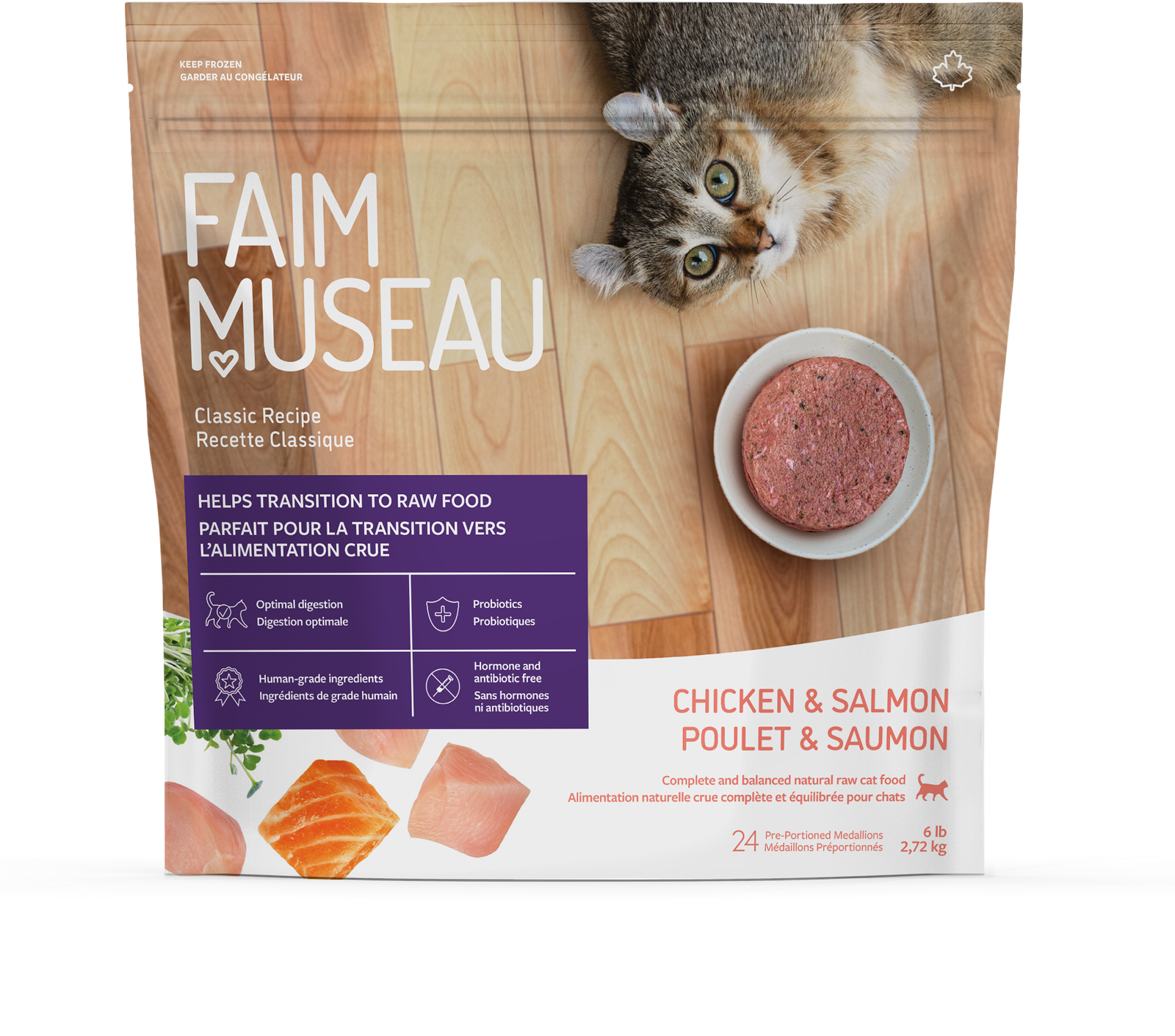 Taste, texture, temperature: nothing gets past a cat’s finely tuned palate. Made of chicken and fresh salmon, two proteins adored by felines, this elaborate formula is ideal for introducing your furry friend to natural food, or for kittens. Also good to know: chicken is a delicate protein, great for cats with a sensitive stomach.
