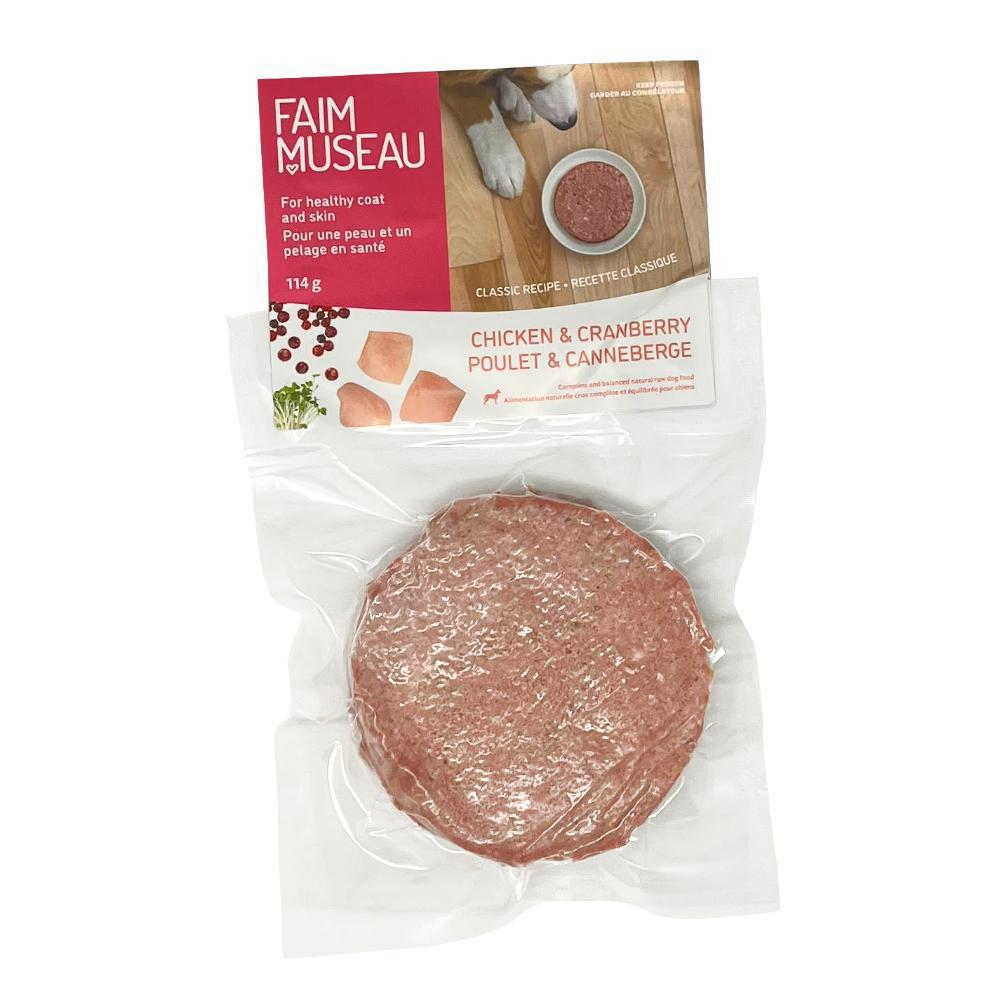 One of Faim Museau’s firsts, this recipe is a favourite among dogs. Our secret? The delicious combo of chicken and cranberries, a fruit known to prevent urinary problems and plaque in dogs.
