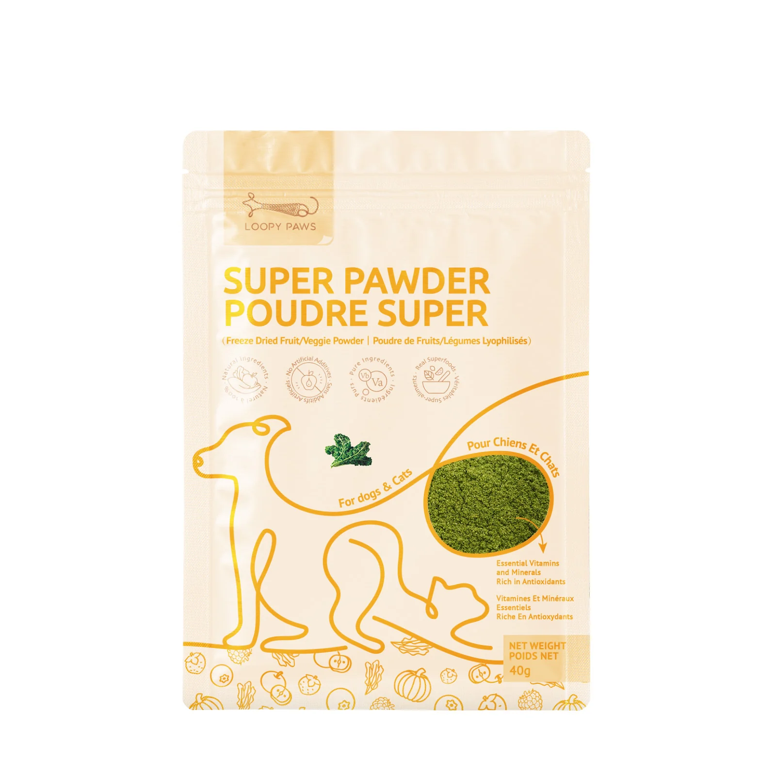 Boost your pet’s daily nutrition with Super Pawder - Kale, a nutrient-dense, freeze-dried powder made from 100% natural kale. Packed with essential vitamins, minerals, and antioxidants, this versatile powder enhances your pet’s diet in a flavorful and wholesome way.