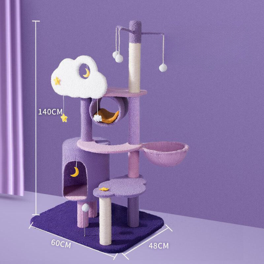 Plush Cat Tree Purple Starry Night 140cm Tall