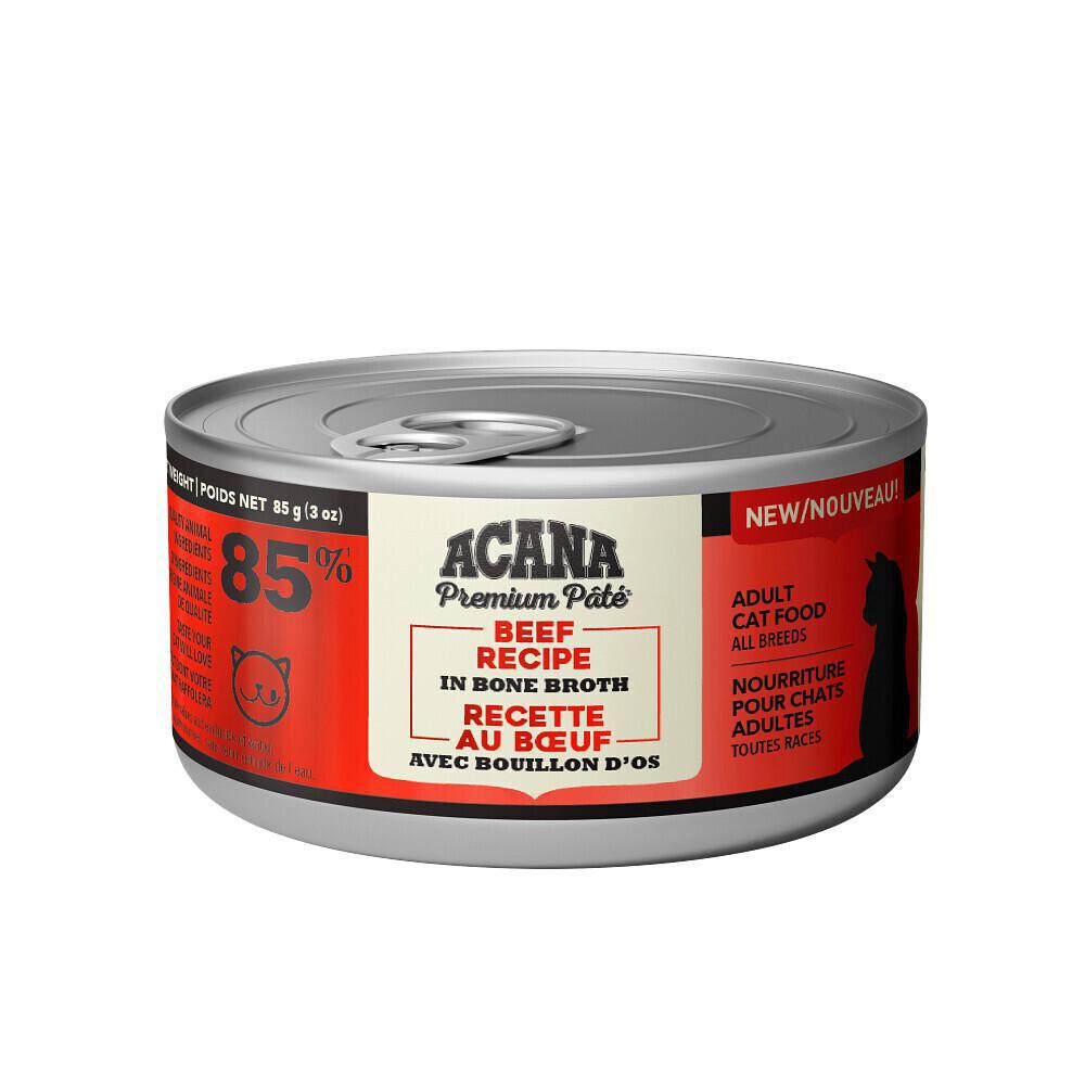 ACANA® recipes are thoughtfully crafted from start to finish with delicious, quality ingredients. ACANA® Premium Pâté Beef Recipe in Bone Broth is specially crafted to nourish your cat with 85%1 quality animal ingredients. Our premium pate also includes savoury bone broth that provides the added hydration your cat needs, as well as a burst of delicious flavour in every bite. Rich with quality raw animal ingredients, ACANA Premium Pâté satisfies your cat completely with the animal protein they crave.