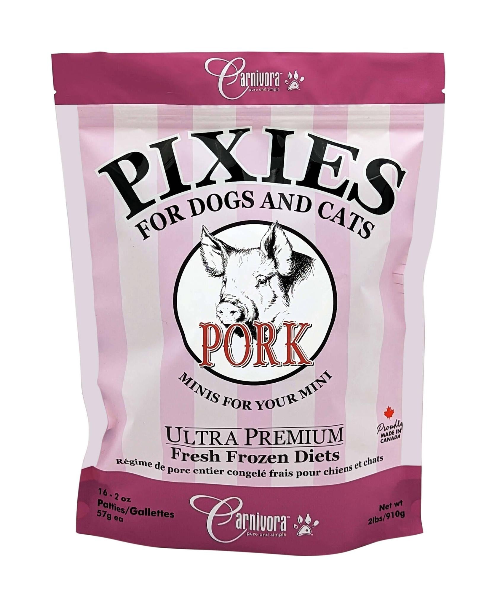 Pork is a red meat high in protein and rich in many vitamins and minerals. Our lean pork is an excellent addition to a healthy diet for your pet. Our pork diet contains an average of 12.5% fat because of our level of trimming and various other factors. The fatty acid composition of pork is slightly different from the meat of ruminant animals, such as beef and lamb. It is low in conjugated linoleic acid (CLA) and is slightly richer in unsaturated fats.