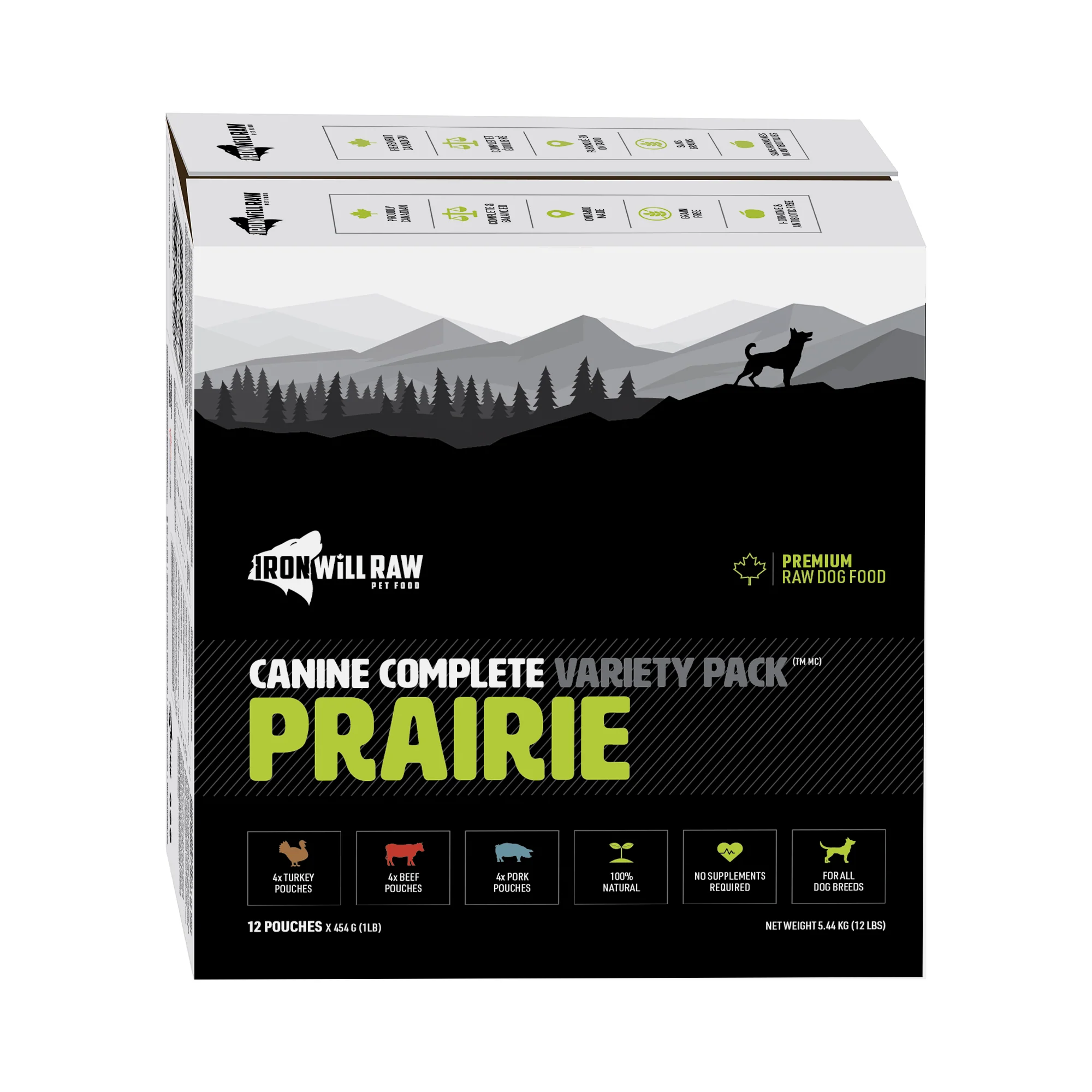 Iron Will Raw Canine Complete Prairie Variety Pack is a combination of essential proteins your dog will love.