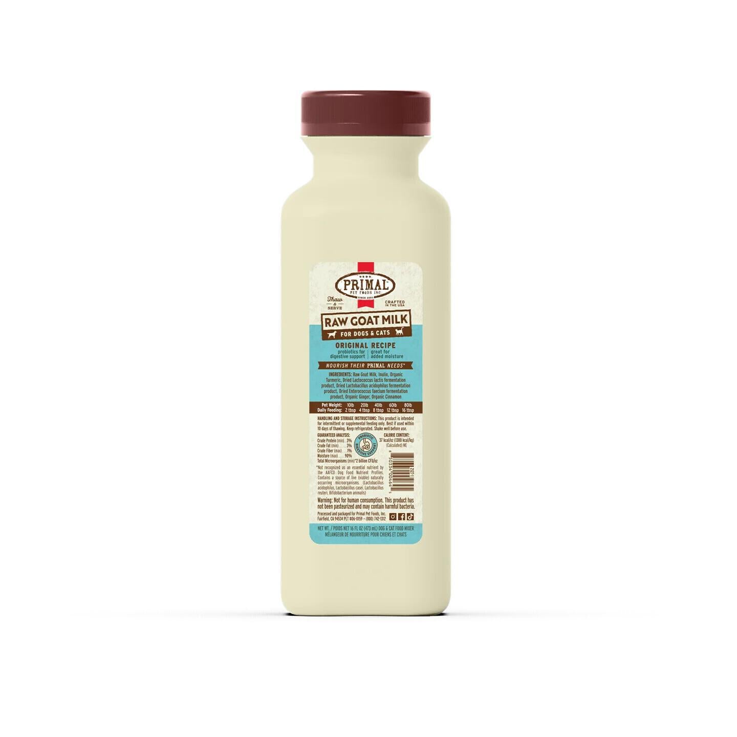 Raw Goat Milk, Dried Lactobacillus lactis fermentation product, Dried Lactobacillus acidophilus fermentation product, Dried Enterococcus faecium fermentation product, Inulin, Organic Turmeric (color), Organic Ginger, Organic Cinnamon.
