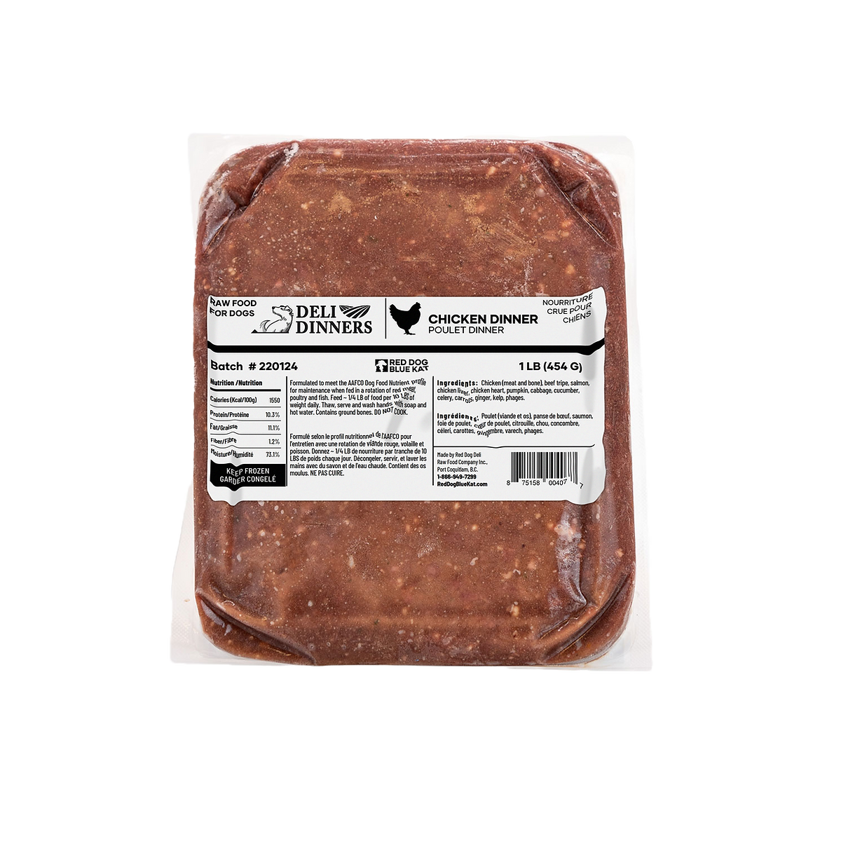 Free-run chicken (meat and bone), beef tripe, salmon, chicken liver, chicken heart, pumpkin, cabbage, cucumber, celery, carrots, ginger, kelp, and bacteriophages.